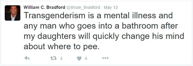 I wondered if those were all of his worst tweets, so I checked out Bradford's Twitter account in the Internet Archive's Wayback Machine. The Wayback had captured two pages of his tweets, yet even that small sampling yielded more cringe-inducing tweets that weren't in the WaPo article: